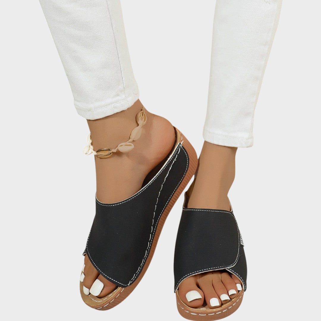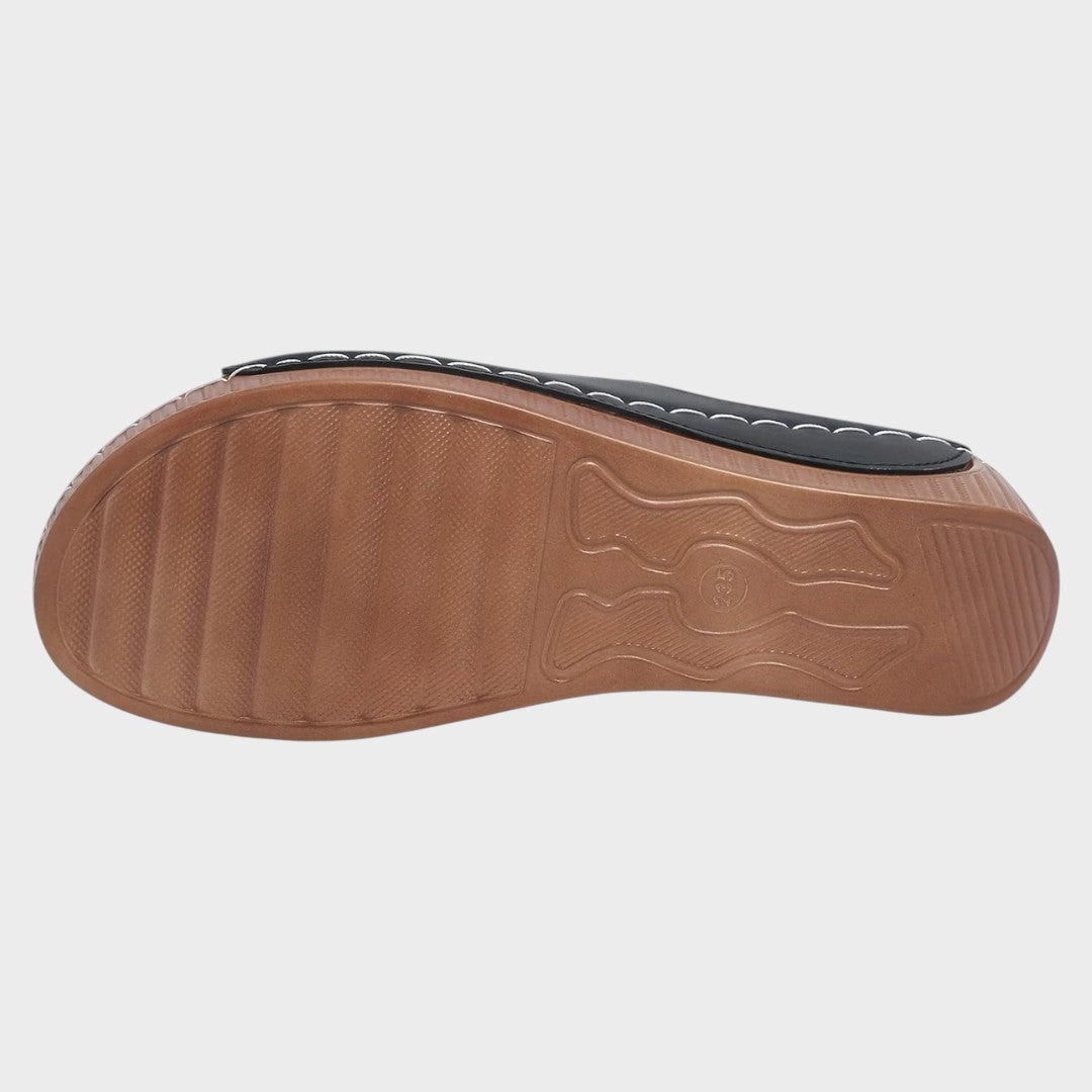 Con un diseño elegante que garantiza la salud de tus pies, una suela antideslizante para máxima seguridad y un ajuste anatómico que acompaña suavemente cada paso.