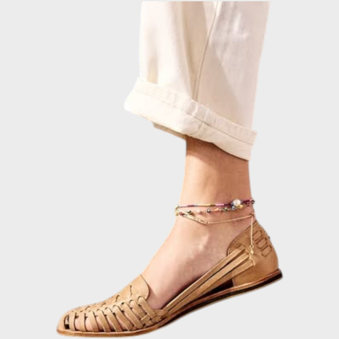Las sandalias Grace estilo Huarache presentan un diseño artesanal con tiras de cuero entrelazadas para mayor comodidad y transpirabilidad. Su estilo atemporal complementa fácilmente una variedad de estilos y ocasiones. Son ideales para quienes buscan ligereza, practicidad y un toque tradicional en su día a día.